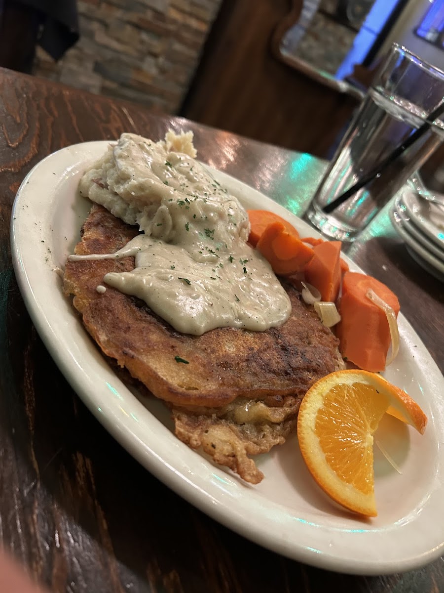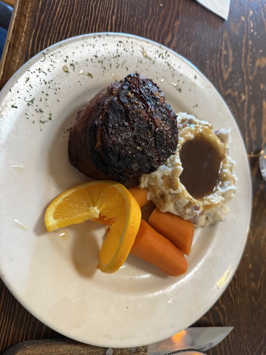 Food was outstanding my husband had the cordon blu, I had the rib eye, both were cooked correctly, served hot with sides....Now one of the least things that are talked about but I want to talk about is the person, behind the wall of the kitchen is a Chef, with great talent and complex skills... My dinner was served with these large portion sized carrots, yes the humble carrot, but I can't even explain thoroughly how complex the flavor was , cooked to PERFECTION literally with compound flavor, not your run of the meal bland overcooked, mushy, water drenched Yuck....Im not a big fan of carrots, but this magic turned my head around, can't stop thinking how he did it ...for attention to all of the details on a meal that served takes balance,education and above all PASSION....I thank you for a great meal....I will be back next year and will definitely make it a point to stop by....Your giving Steve's a run for their money...????????
